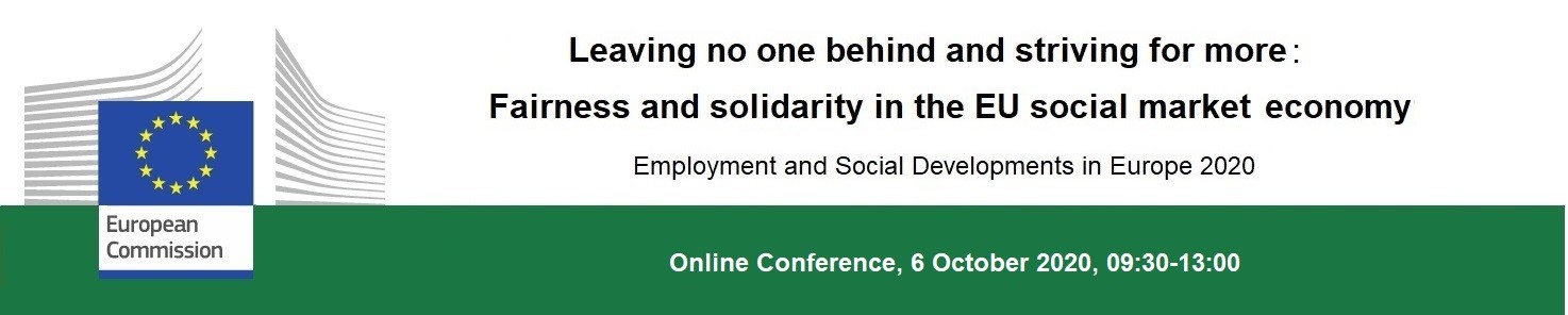 Welcome to the registration website of the online conference 'Leaving no one behind and striving for more: Fairness and solidarity in the EU social market economy. Employment and Social Developments in Europe 2020'  which will take place on 6 October 2020 from 9:30 to 13:30.