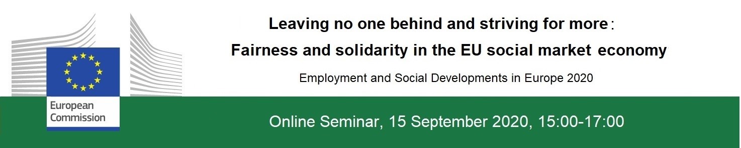 Welcome to the registration website of the online seminar 'Leaving no one behind and striving for more: Fairness and solidarity in the EU social market economy.  . Employment and Social Developments in Europe 2020'  which will take place on 15 September 2020 at 15:00 - 17:00.